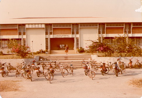 อาคารหอสมุดหลังแรก ก่อสร้างโดยใช้เงินกู้ธนาคารโลก ใช้เวลาก่อสร้าง 1 ปี พื้นที่อาคาร 2,732.92 ตารางเมตร เอกสารสิ่งพิมพ์ของห้องสมุดเน้นด้านการเกษตรและสาขาที่เกี่ยวข้อง จัดซื้อด้วยเงินกู้ธนาคารโลกเช่นกัน ในระยะแรกมีหนังสือประมาณ 7,000 เล่ม วารสารประมาณ 300 รายการ พิจารณาคัดเลือกโดย ผู้ช่วยศาสตราจารย์ดรุณา สมบูรณกุล และ Mr. R.J. Blanchard ซึ่งเป็นผู้เชี่ยวชาญและเป็นผู้อำนวยการของหอสมุดวิทยาลัยแคลิฟอร์เนีย เมืองเดวิส นอกจากนี้ยังได้แบ่งสิ่งพิมพ์ส่วนหนึ่งมาจากสำนักหอสมุด บางเขน ด้วย เมื่อเริ่มเปิดบริการมีบุคลากร 6 คน ประกอบด้วย บรรณารักษ์ 2 คน เจ้าหน้าที่ 2 คน (ยืมตัวจาก คณะวิศวกรรมศาสตร์ 1 คน) ภารโรง 2 คน และนิสิตช่วยงานห้องสมุด 5 คน มีที่นั่งอ่านหนังสือประมาณ 500 ที่นั่ง ให้บริการผู้ใช้ประมาณวันละ 400 คน